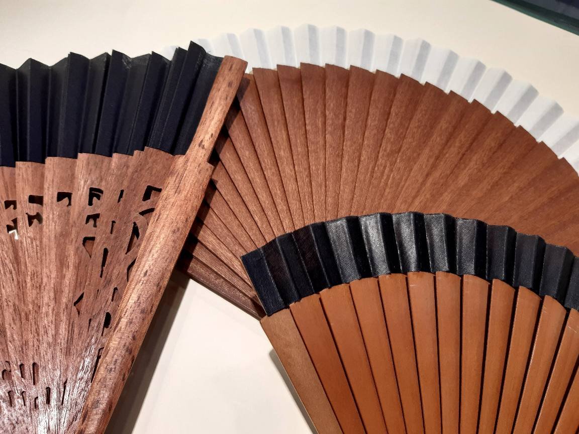 Il legno per realizzare un ventaglio deve avere delle caratteristiche particolari e imprescindibili. Deve essere possibile tagliarlo in bacchette fini e leggere, deve essere resistente e avere un giusto grado di rigidezza e elasticità che permetta di essere agitato innumerevoli volte per ventilarsi, senza né piegarsi né spezzarsi. Tra i tipi di legno più usati ci sono, il pero, la betulla, la bubinga, la danta (kotibè) e il pallisandro.